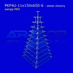 PATERA to elegancki wielopoziomowy stojak ekspozycyjny przypominający swoim wyglądem fontannę klasyczną. Model powstał na drodze modernizacji "Stojaka Fontanna" o przekładkach. Skręcony stojak można przenosić z miejsca na miejsce, co nie jest możliwe w Fontannach krzyżakowych. Zmiany konstrukcyjne dodatkowo poprawiły wygląd stojaka, stał się on bardziej elegancki. Dlatego polecamy go również butikom do prezentacji ekskluzywnych przedmiotów: biżuterii i galanterii. Dane użytkowe: Stojak wykonany jest z materiału posiadającego atest na kontakt z artykułami spożywczymi. Atest można pobrać w zakładce - "Załączniki". Produktu nie można myć w zmywarce.