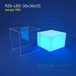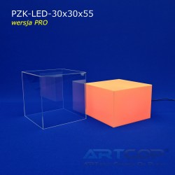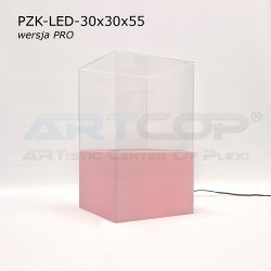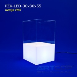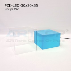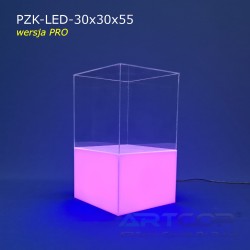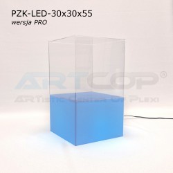 podest 30x30x25cm + klosz bezbarwny 30x30x30cm (samocentrujący = dopasowuje się z powierzchniami kolumny, nie zsuwa się na boki) + podświetlenie ledowe RGB (fullcolor)