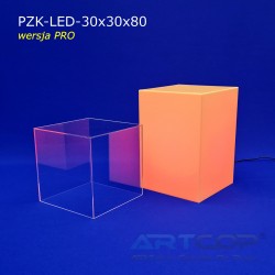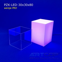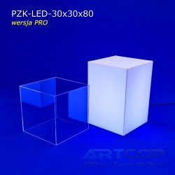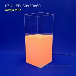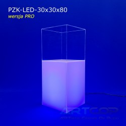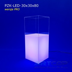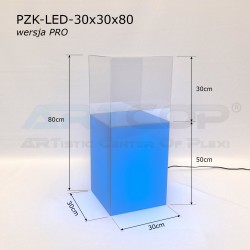 podest 30x30x50cm + klosz bezbarwny 30x30x30cm (samocentrujący = dopasowuje się z powierzchniami kolumny, nie zsuwa się na boki) + podświetlenie ledowe RGB (fullcolor)