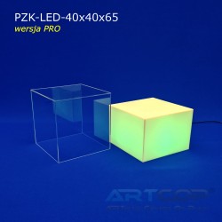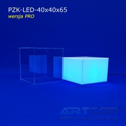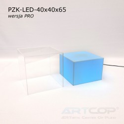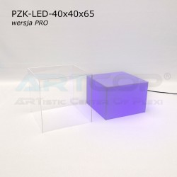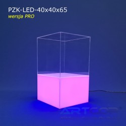 podest 40x40x25cm + klosz bezbarwny 40x40x40cm (samocentrujący = dopasowuje się z powierzchniami kolumny, nie zsuwa się na boki) + podświetlenie ledowe RGB (fullcolor)