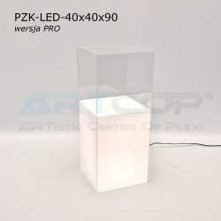 podest 40x40x50cm + klosz bezbarwny 40x40x40cm (samocentrujący = dopasowuje się z powierzchniami kolumny, nie zsuwa się na boki) + podświetlenie ledowe RGB (fullcolor)