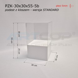 podest 30x30x25cm + klosz bezbarwny 30x30x30cm (samocentrujący = dopasowuje się z powierzchniami kolumny, nie zsuwa się na boki)