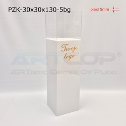 podest 30x30x100cm + klosz bezbarwny 30x30x30cm (samocentrujący = dopasowuje się z powierzchniami kolumny, nie zsuwa się na boki) + nadruk logotypu na 1 ściance
