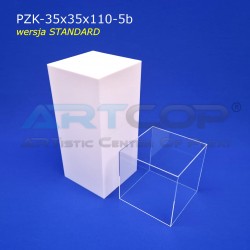 podest 35x35x75cm + klosz bezbarwny 35x35x35cm (samocentrujący = dopasowuje się z powierzchniami kolumny, nie zsuwa się na boki)