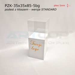 podest 35x35x50cm + klosz bezbarwny 35x35x35cm (samocentrujący = dopasowuje się z powierzchniami kolumny, nie zsuwa się na boki) + nadruk logotypu na 1 ścianie