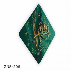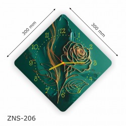 Kwadratowy (Romb) zegar ścienny z plexi o bokach wym.: 30cm x 30cm - Złota Róża, nadruk UV zieleń