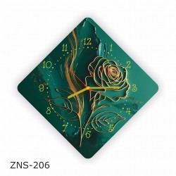 Kwadratowy, rombowy zegar ścienny o bokach: 30cm x 30cm z nadrukowaną grafiką w technologii druk UV w fullcolor.