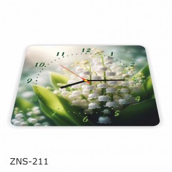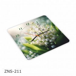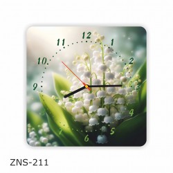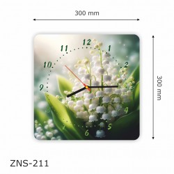 Kwadratowy zegar ścienny z plexi o wym.: 30cm x 30cm - Konwalie, nadruk UV