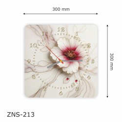 Kwadratowy zegar ścienny o bokach: 30cm x 30cm z nadrukowaną grafiką w technologii druk UV w fullcolor.