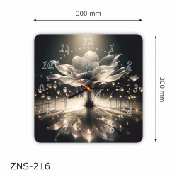 Kwadratowy zegar ścienny o bokach: 30cm x 30cm z nadrukowaną grafiką w technologii druk UV w fullcolor.