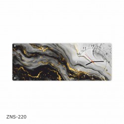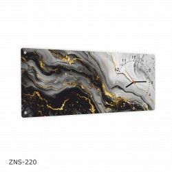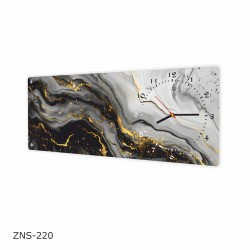 Prostokątny zegar ścienny z plexi o bokach wym.: 80cm x 30cm - Marmur ze złotem, nadruk UV