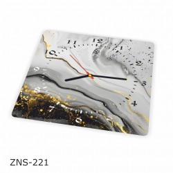 Kwadratowy zegar ścienny z plexi o wym.: 30cm x 30cm - Szary marmur ze złotemnadruk UV